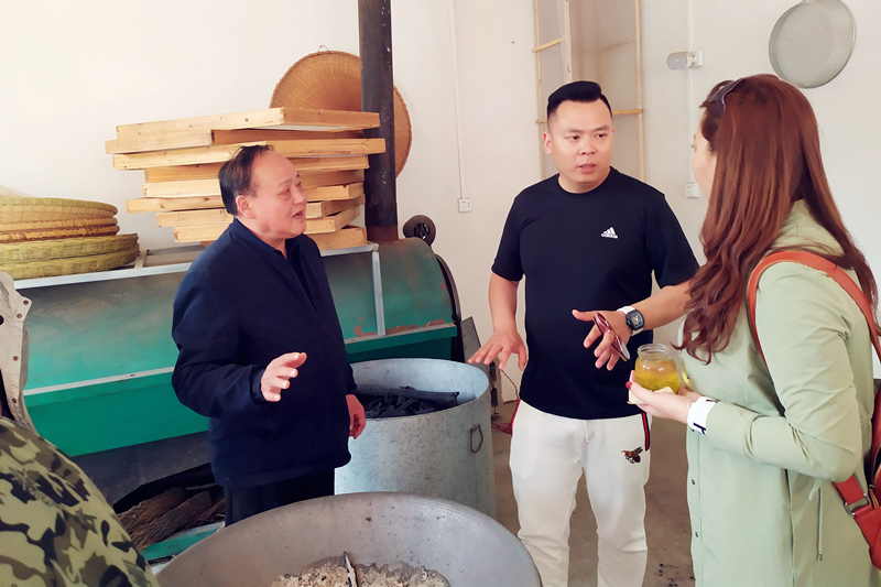 在這個(gè)秀美的山村里,周祖宏是個(gè)“名人”,他是周氏炒茶家族第四代傳人,憑著一手炒茶絕活,被河南省文化廳評(píng)為河南省省級(jí)非物質(zhì)文化遺產(chǎn)項(xiàng)目(信陽(yáng)毛尖茶采制技藝)代表性傳承人。洛陽(yáng)開(kāi)元集團(tuán)一行來(lái)到周老師家里,董事長(zhǎng)許明月與周老師親切交談,對(duì)制茶、品茶、信陽(yáng)茶文化等一系列問(wèn)題做了相互交流。在手工茶坊里集團(tuán)員工們也興致高昂地觀摩了炒茶師傅高超的手藝,手工炒茶可以使茶的營(yíng)養(yǎng)成分更高,口感上偏濃,更加耐泡。大家品的是茶,吐出的是都市的困頓與繁雜。在300余畝的茶園中,縷縷茶香沁人心脾,在采茶工的引領(lǐng)下,全體員工愜意自得地體驗(yàn)采茶的樂(lè)趣。